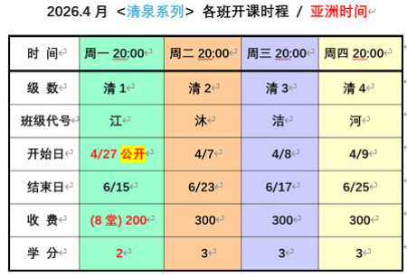 上课日期: 亚洲时间 2026/4/7- 2026/6/25